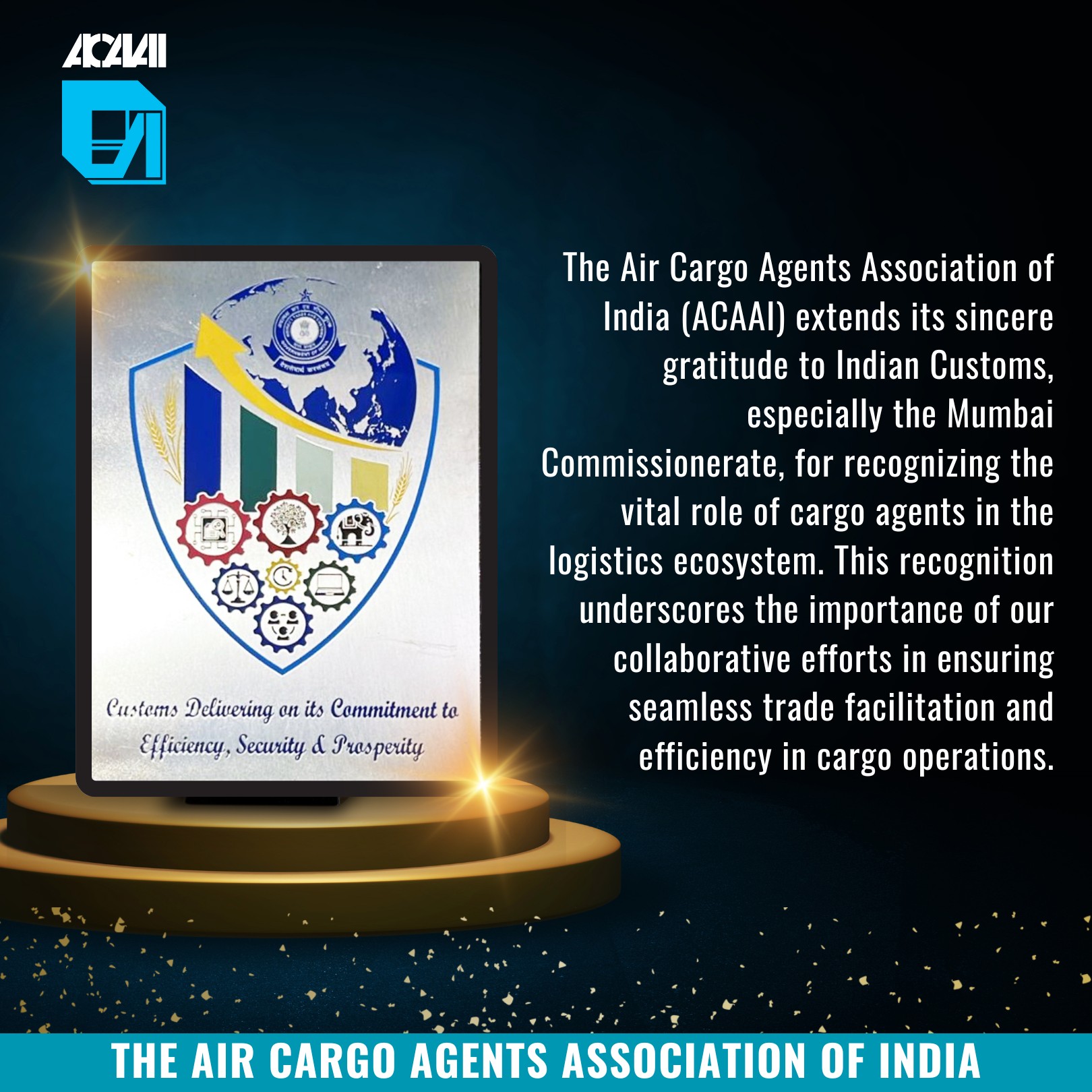 The Air Cargo Agents Association of India – ACAAI extends its sincere gratitude to Indian Customs, especially the Mumbai Commissionerate, for recognizing the vital role of cargo agents in the logistics ecosystem. This recognition underscores the importance of our collaborative efforts in ensuring seamless trade facilitation and efficiency in cargo operations.We are deeply honored to receive […]