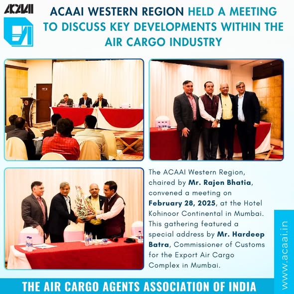 The ACAAI Western Region, chaired by Mr. Rajen Bhatia, convened a meeting on February 28, 2025, at the Hotel Kohinoor Continental in Mumbai. This gathering featured a special address by Mr. Hardeep Batra, Commissioner of Customs for the Export Air Cargo Complex in Mumbai. The meeting attracted a significant number of attendees and focused on […]