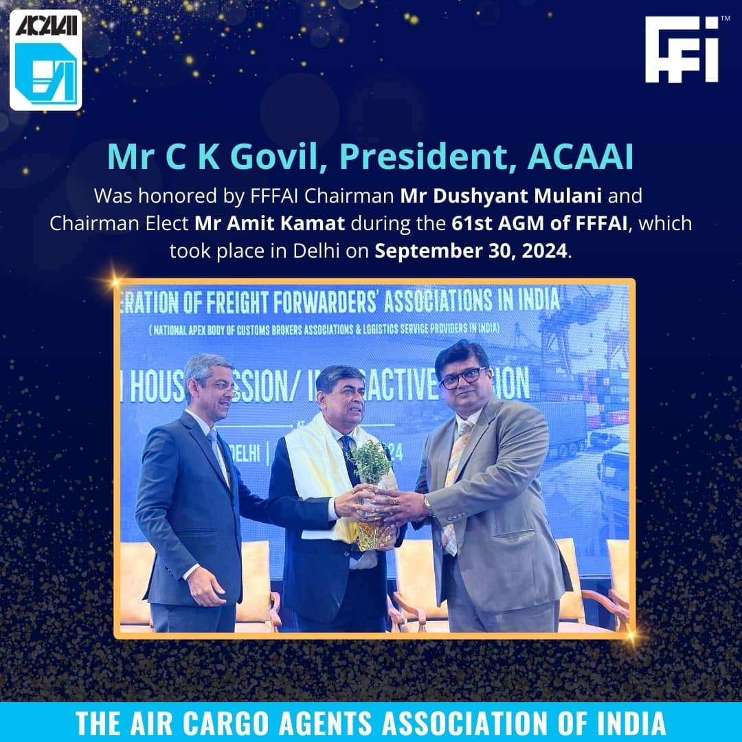 The Air Cargo Agents Association of India – ACAAI welcomes the launch of VEGA (Vision for Expeditious Goods Release on Arrival) by Hon’ble Minister of Finance Smt Nirmala Sitharaman ji.